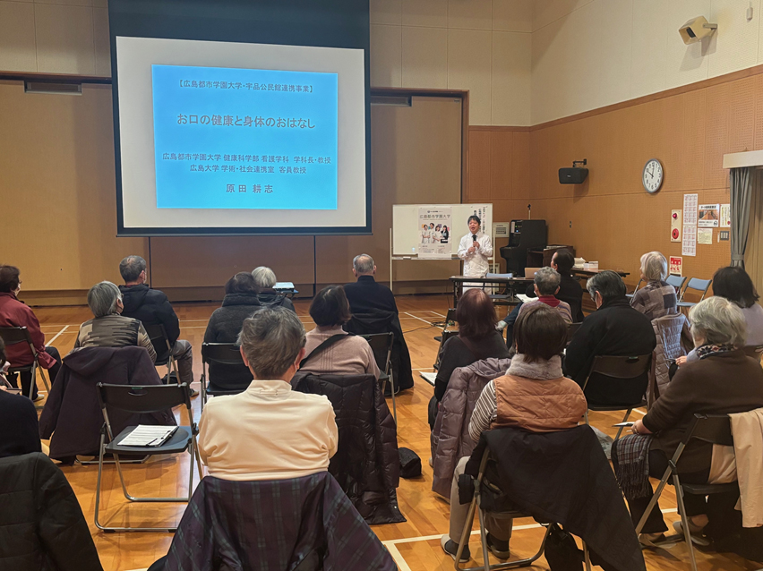 また、今回の交流会は、メイン会場(広島都市学園大学)のほか、大宮会場、オンラインの3会場での開催でしたが、 グループワーク後の発表では、本学学生がメイン会場の代表として発表しました。