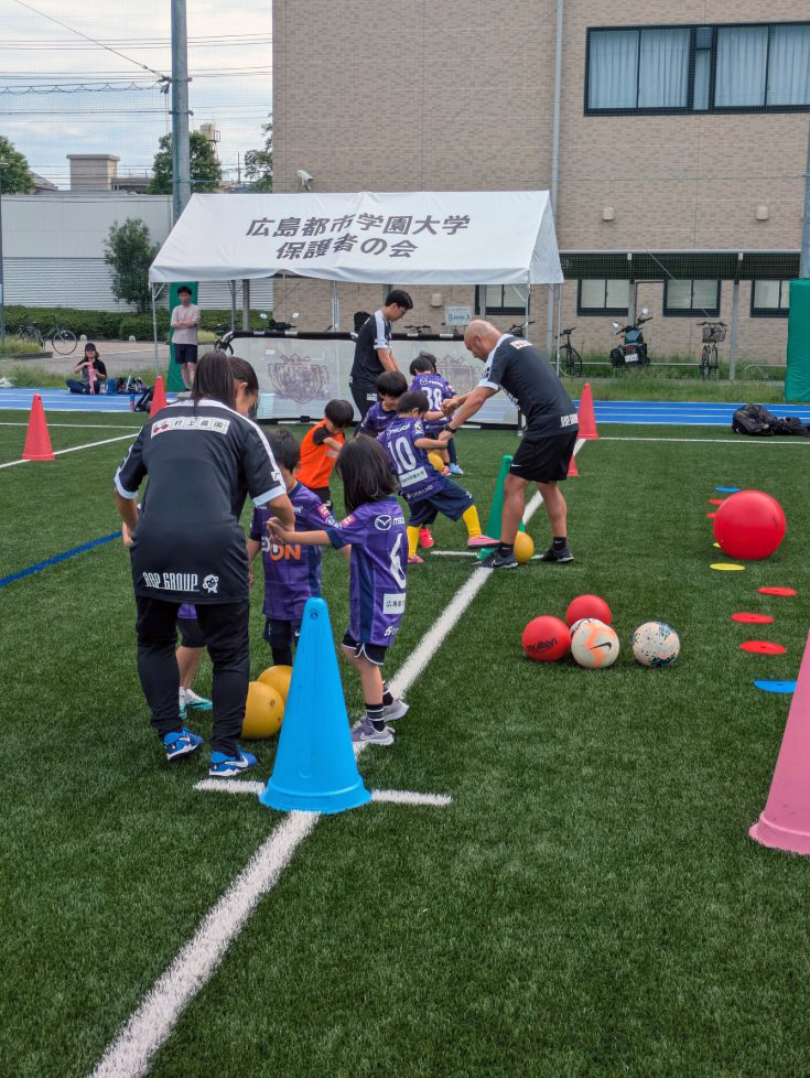 サンフレッチェ広島ジュニアスクールについて 2025年9月30日 トピックス 本校宇品人工芝グランドでサンフレッチェ広島ジュニアスクールが開催されています。年少から小学校2年生までの子どもたちを対象に行っています。 本校学生もお手伝いをしています。