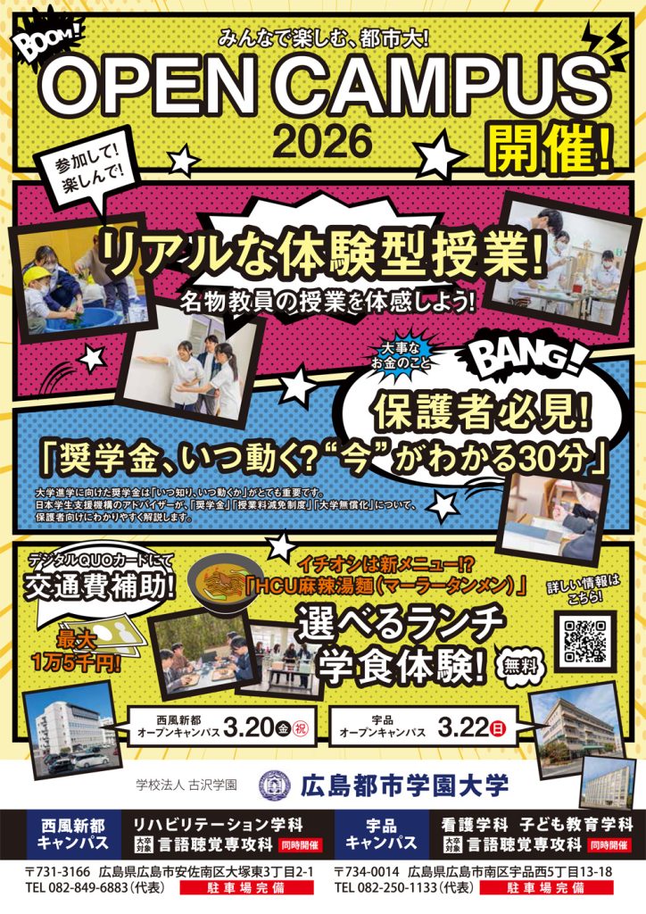 3月20日(金祝)・22日(日)にオープンキャンパスを開催します。