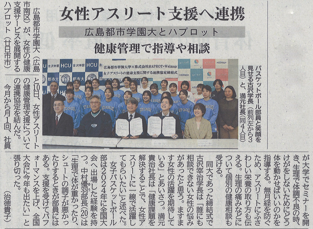 この度本学は株式会社HAPROT・Welmap事業部様との間で女子アスリートの健康管理支援に関する連携協定を締結しました。
