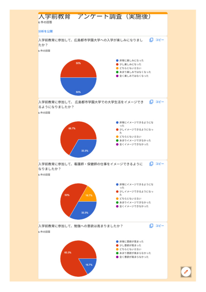 入学後の大学教育を円滑につなげるため、高等学校での学習との関連付けや、入学前に学んでおくべき内容など、入学予定者の「ケア」は重要視されています。また、アンケート結果では満足された参加者が多かったため、改善しながら継続して行きたいと考えています。