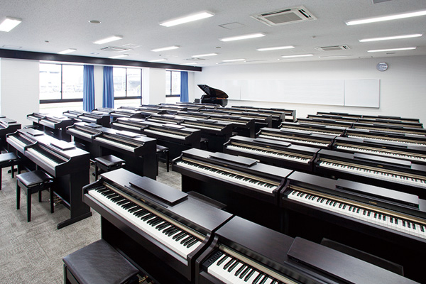 音楽室には48台の電子ピアノと1台のグランドピアノが設置してあり、ピアノ技法などの講義や個人レッスン、自主練習に活用されています。