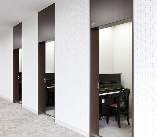 17室のアップライトピアノを設置した練習用の個室を音楽室に併設しています。防音仕様で、自主練習はもちろん、個人レッスンも受けることができます。