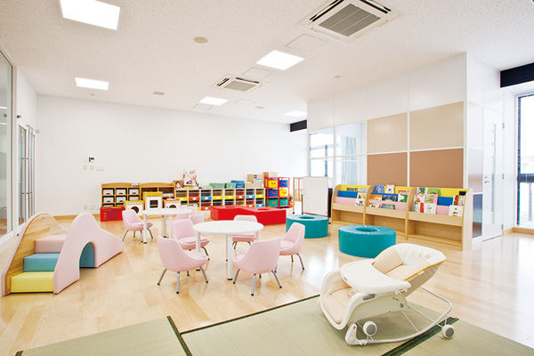 子育て家庭の親とその子どもがいつでも気軽に集い、交流できる遊び場です。保育士がサポートし、相談に応じます。学生もボランティアとして子育て支援を学びます。